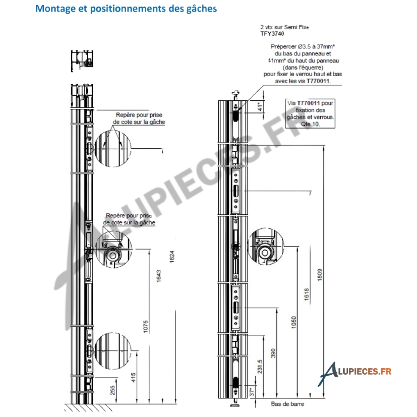 Technal Volma FY 1-leaf DEP monobloc door strike kit (right-hand when pushed) for Technal FY65 door.